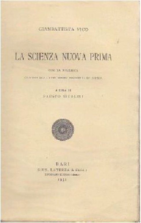 LA SCIENZA NUOVA PRIMA CONTRO ATTI ERUDITI DI LIPSIA Giambattista Vico 1931 libr