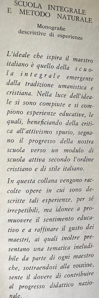 Collana: Scuola integrale e metodo naturale. Monografie descrittive di esperienze