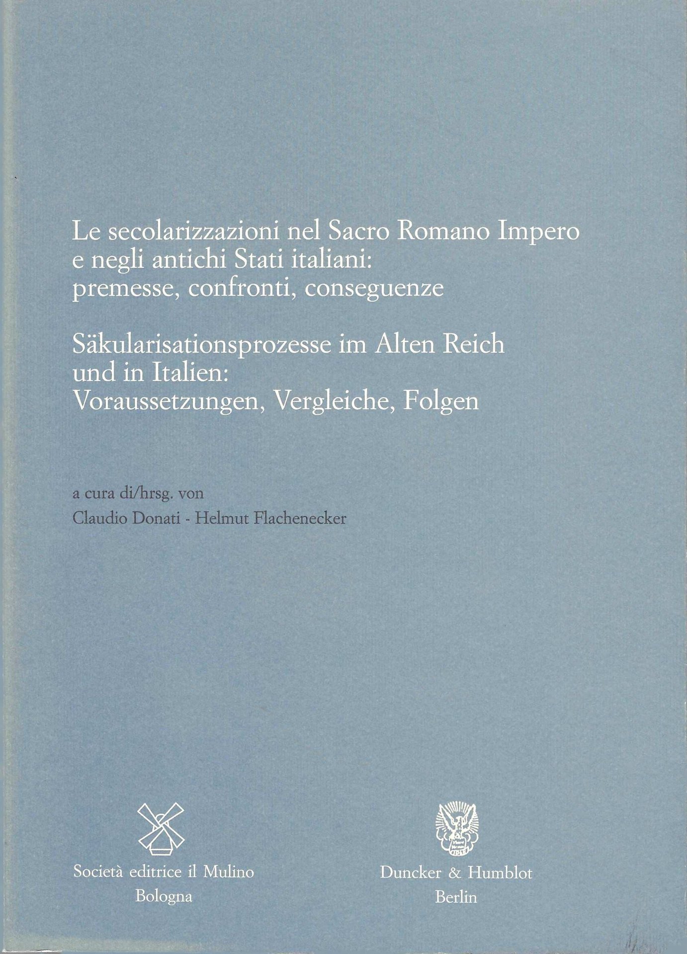 Donati Claudio, Flachenecker Helmut: La secolarizzazione nel Sacro Romano Impero e negli antichi Stati italiani: premesse, confronti, conseguenze. Il Mulino, Dunker & Humblot, 2005.