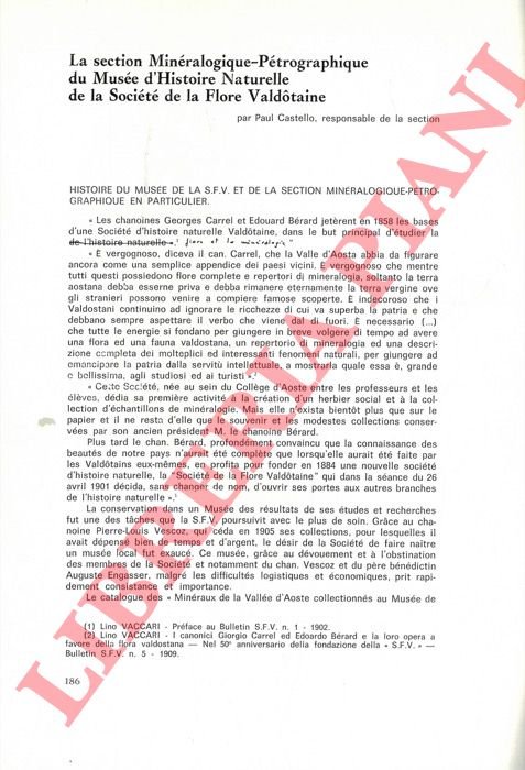 Aosta, 1976, 8vo stralcio, pp. 186/189. - ! ATTENZIONE !: Con il termine estratto (o stralcio) intendiamo riferirci ad un fascicolo contenente un articolo, completo in se, sia che esso sia stato stampato a parte utilizzando la stessa composizione sia che provenga direttamente da una rivista. Le pagine sono indicate come "da/a", ad esempio: 229/231 significa che il testo è composto da tre pagine. Quando la rivista di provenienza non viene indicata é perché ci è sconosciuta. - ! ATTENTION !: : NOT A BOOK : “extract” or “excerpt” means simply a few pages, original nonetheless, printed in a magazine. Pages are indicated as in "from” “to", for example: 229/231 means the text comprises three pages (229, 230 and 231). If the magazine that contained the pages is not mentioned, it is because it is unknown to us.