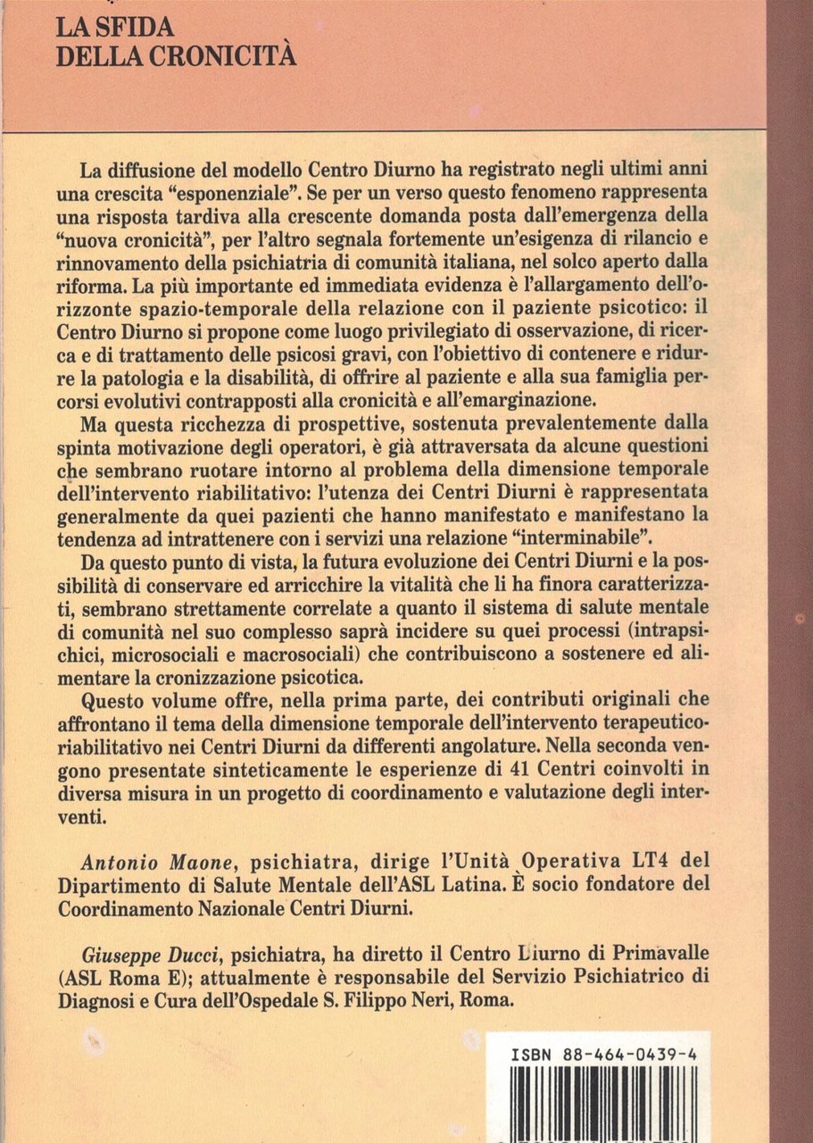 La sfida della cronicità-tempi della psicosi e tempi dell'intervento riabilitativo nei Centri Diurni