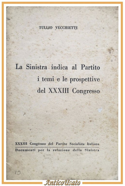 LA SINISTRA INDICA AL PARTITO I TEMI E LE PROSPETTIVE DEL XXXIII CONGRESSO del partito socialista italiano, documenti per la relazione della sinistra di Tulio Vecchietti