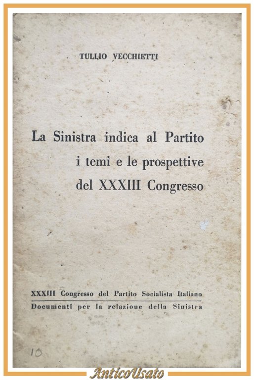 LA SINISTRA INDICA AL PARTITO I TEMI E LE PROSPETTIVE DEL XXXIII CONGRESSO del partito socialista italiano, documenti per la relazione della sinistra di Tulio Vecchietti.
