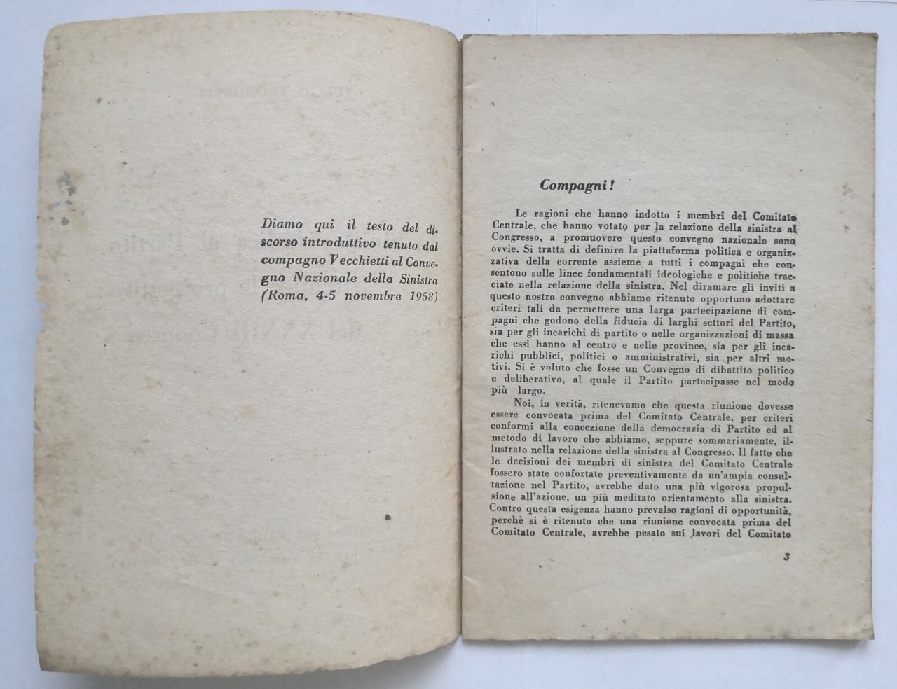 LA SINISTRA INDICA AL PARTITO TEMI E LE PROSPETTIVE DEL 33 CONGRESSO 1958 libro