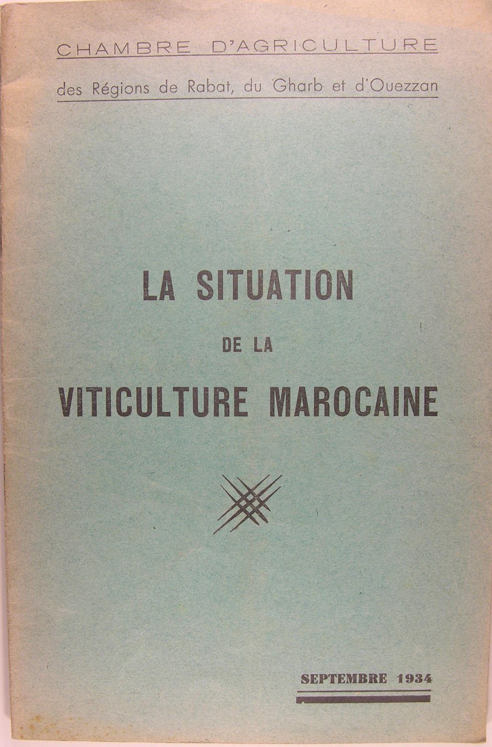 Chambre d'agriculture des régions de Rabat, du Gharb et d'Ouezzan, 1934. Plaquette in/8 (24 x 16 cm) brochée imprimée, 26 pages.