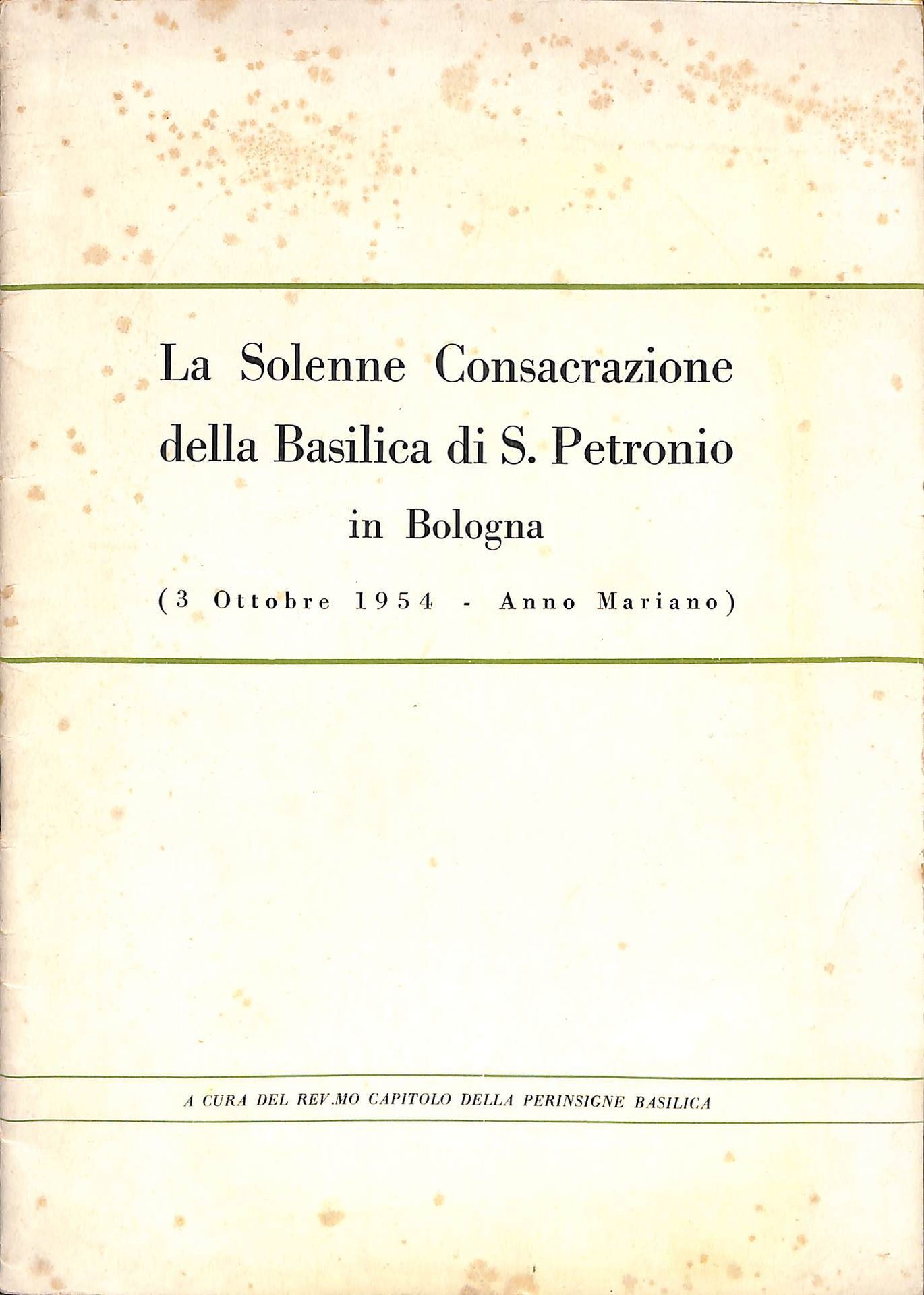 La solenne consacrazione della Basilica di S. Petronio in Bologna : Bologna, 3 ottobre 1955 nel primo anniversario della consacrazione. 32 p. : ill. ; 24 cm Buono (Good)