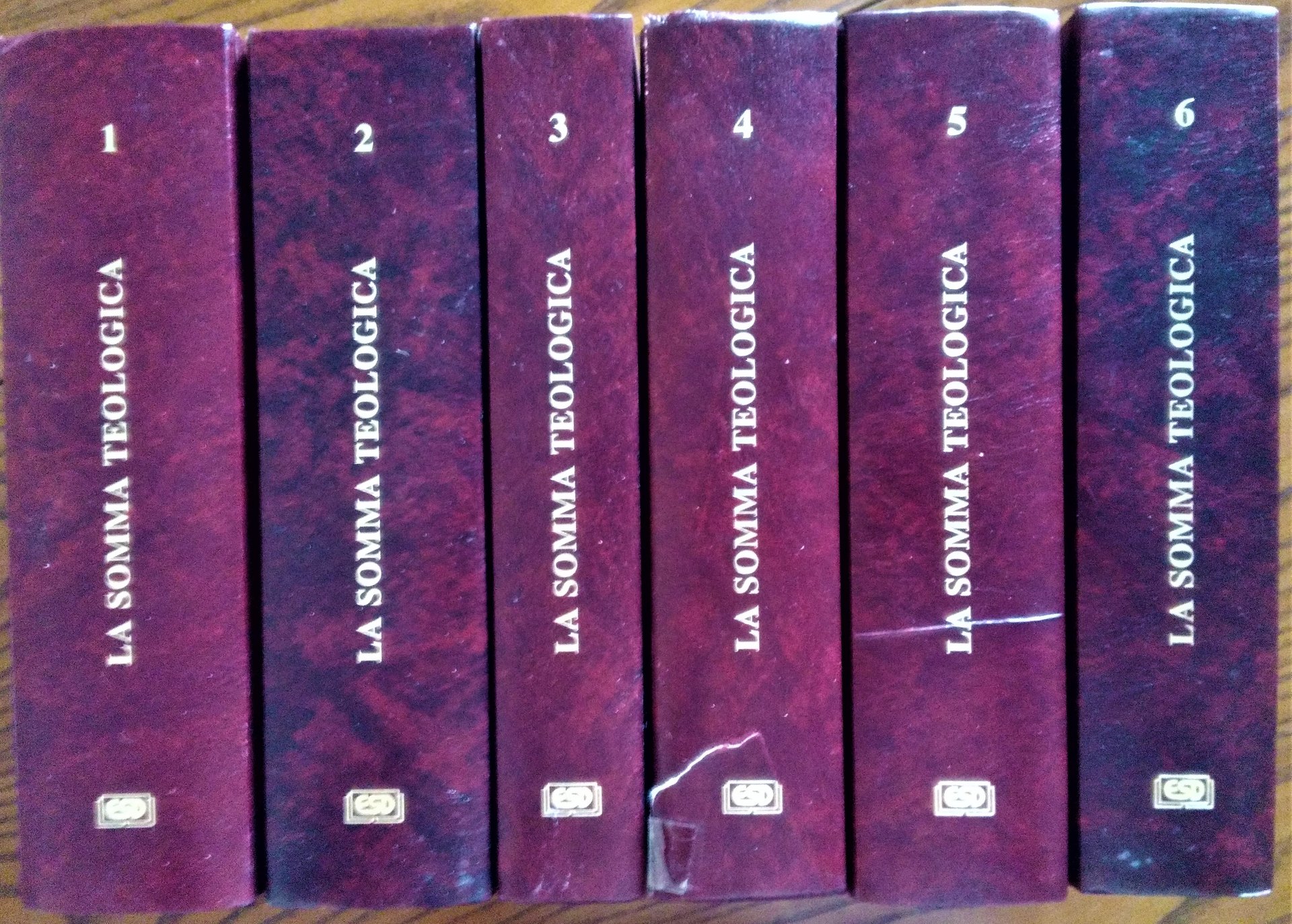 Bologna, Edizioni Studio Domenicano, 1996-1997. 8°, sei volumi, pp. 1035; 974; 611; 816; 919; 842, legature editoriali con titoli ai piatti ed ai dorsi. Le legature del primo e quarto volume presentano degli strappi, senza perdite, sommariamente riparate dal precedente proprietario con nastro adesivo. Internamente molto ben conservato.