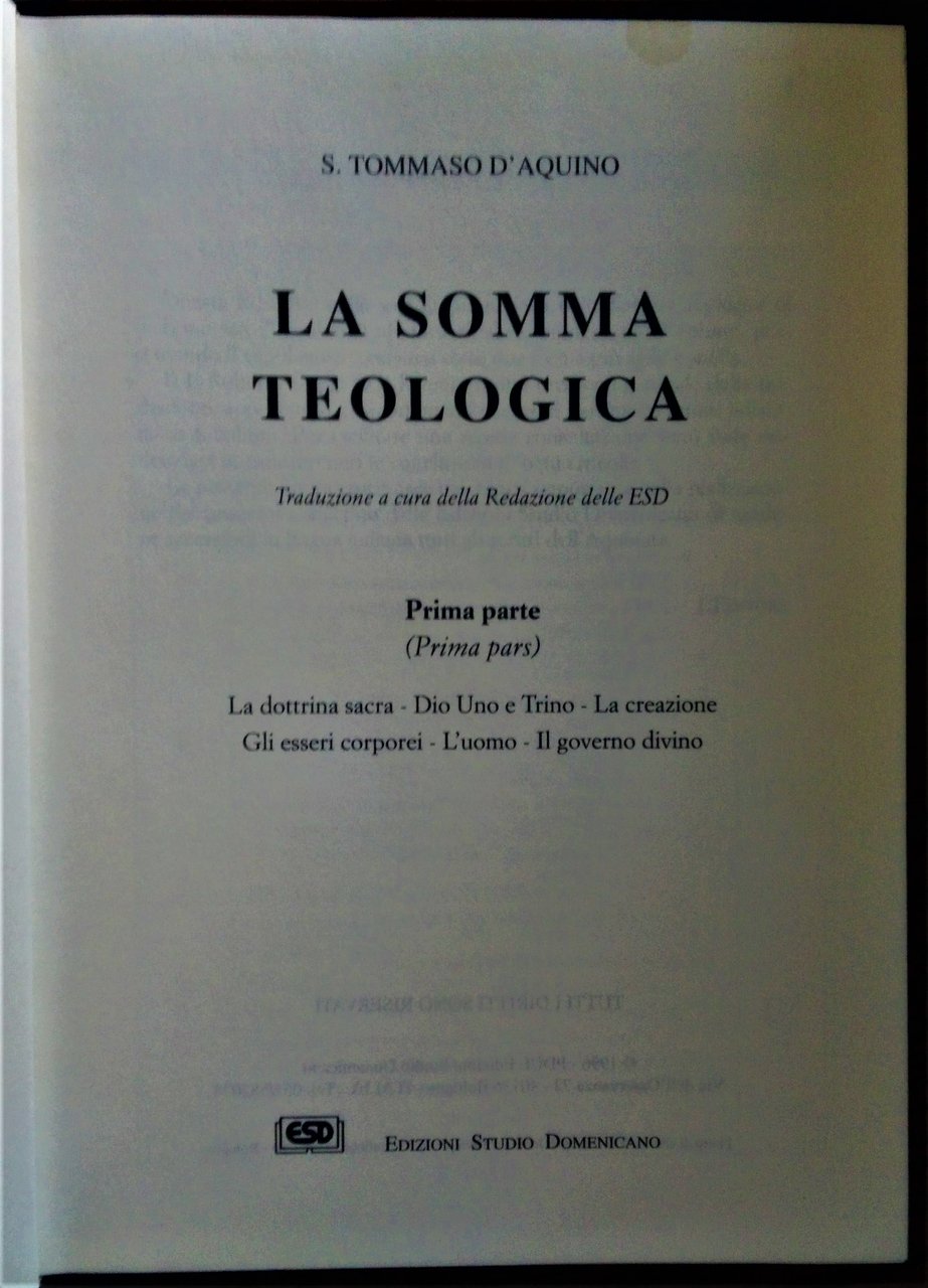 La Somma Teologica. Traduzione a cura della Redazione delle ESD.