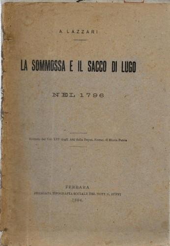 prima ediz., in 8°, pp. XIV, 314, bross. rifatta con piatti originali applicati; "Estratto dal vol. XVI degli Atti della Deput. Ferrar. di Storia Patria", in cui si tratta dell'Insorgenza antifrancese nella cittadina romagnola tra il 30 giugno e l'8 luglio 1796. Due dediche al front., tra cui quella dell'A. 118/23