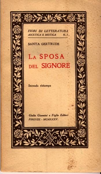 GIULIO GIANNINI E F. ED., 1935, sec. ristampa. "Fiori di Lett. ascetica e mistica", 3. In-16° (17,7x10,5), pp. XVIII, 23, foto in b.n in apertura di libro. (ascetica e mistica) OTTIMO stato