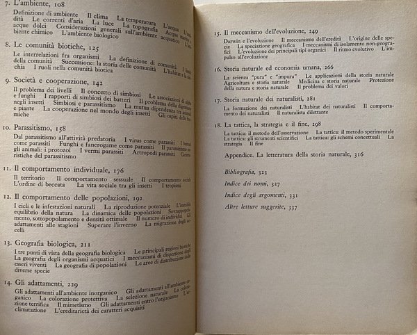 Soggetti: Filosofia della Scienza, Storia naturale, Entomologia, Scienze naturali, Zoologia, Biologia, Organismi viventi, Genetica, Classificazione, Chimica, Opere generali, Riferimento, Bibliografia, Vegetali, Esseri viventi, Virus, Batteri, Funghi, Alghe, Muschi, Epatiche, Felci, Animali, Spugne, Protozoi, Celenterati, Anellidi, Echinodermi, Riproduzione cellulare, Cellule, Vita, Sessualità, Eredità, Evoluzione, Sviluppo, Uomini, Umanità, Individuo, Adulto, Insetti, Patrimonio genetico, DNA, RNA, Teorie scientifiche, Haeckel, Metamorfosi, Anfibi, Embrione, Neotenia, Infantilismo, Ambiente, Terra, Luce, Energia, Sole, Clima, Topografia, Demografia, Acqua, Oceani, Mare, Fiumi, Orografia, Correnti d'aria, Comunità biotiche, Cooperazione, Habitat, Successione, Simbiosi, Parassitismo, Piante, Dipendenza, Vermi, Attività predatoria, Parassiti, Territorio, Etologia, Comportamento sessuale, Tropismi, Socialità, Popolazioni, Migrazioni, Uccelli, Cicli naturali, Infestazioni, Inverno, Dinamiche, Specie, Geografia biologica, Dispersione, Adattamento, Mimetismo, Colorazione protettiva, Caratteri acquisiti, Ereditarietà, Charles Darwin, Darwinismo, Speciazione geografica, Isolamento, Economia umana, Agricoltura, Scienziati, Naturalisti, Osservazione, Fenomeni, Strumenti scientifici, Divulgazione scientifica, Libri Vintage Fuori catalogo, Bibliografia, Riferimento, Argomenti, Nomi, Letteratura, Tattica, Strategie, Ecologia, Fogg, Glaciazione, Ere climatiche, Elton, Allee, Osborn, Newton, Huxley, Simpson, Lorenz, Wallace, Mendel, Lamarck, Wheeler, Malattie, Epidemie, Mutualismo, Selezione, Riflessi, Pavlov, Griffin, Frings, David Attenborough, Predatori, Primati, Philosophy of Science, Natural history, Entomology, Natural sciences, Zoology, Biology, Living organisms, Genetics, Classification, Chemistry, General works, Reference, Bibliography, Plants, Living beings, Viruses, Bacteria, Fungi, Algae, Mosses, Liverworts, Ferns, Animals, Sponges, Protozoa, Coelenterates, Annelids, Echinoderms, Cell reproduction, Cells, Life, Sexuality, Heredity, Evolution, Development, Men, Humanity, Individual, Adult, Insects, Genetic heritage, Scientific Theories, Metamorphosis, Amphibians, Embryo, Neoteny, Infantilism, Environment, Earth, Light, Energy, Sun, Climate, Topography, Demography, Water, Oceans, Sea, Rivers, Orography, Air currents, Biotic communities, Cooperation, Succession, Symbiosis, Parasitism, Plants, Dependence, Worms, Predatory activity, Parasites, Territory, Ethology, Sexual behavior, Tropisms, Sociality, Populations, Migrations, Birds, Natural cycles, Infestations, Winter, Dynamics, Species, Biological geography, Dispersion, Adaptation, Camouflage, Protective coloring, Acquired characters, Inheritance, Geographical speciation, Isolation, Human economy, Agriculture, Scientists, Naturalists, Observation, Phenomena, Scientific instruments, Scientific dissemination, Out of print books, Bibliography, Reference, Topics, Names, Literature, Tactics, Strategies, Ecology, Glaciation, Climate eras, Diseases, Epidemics, Mutualism, Selection, Reflexes, Predators, Primates