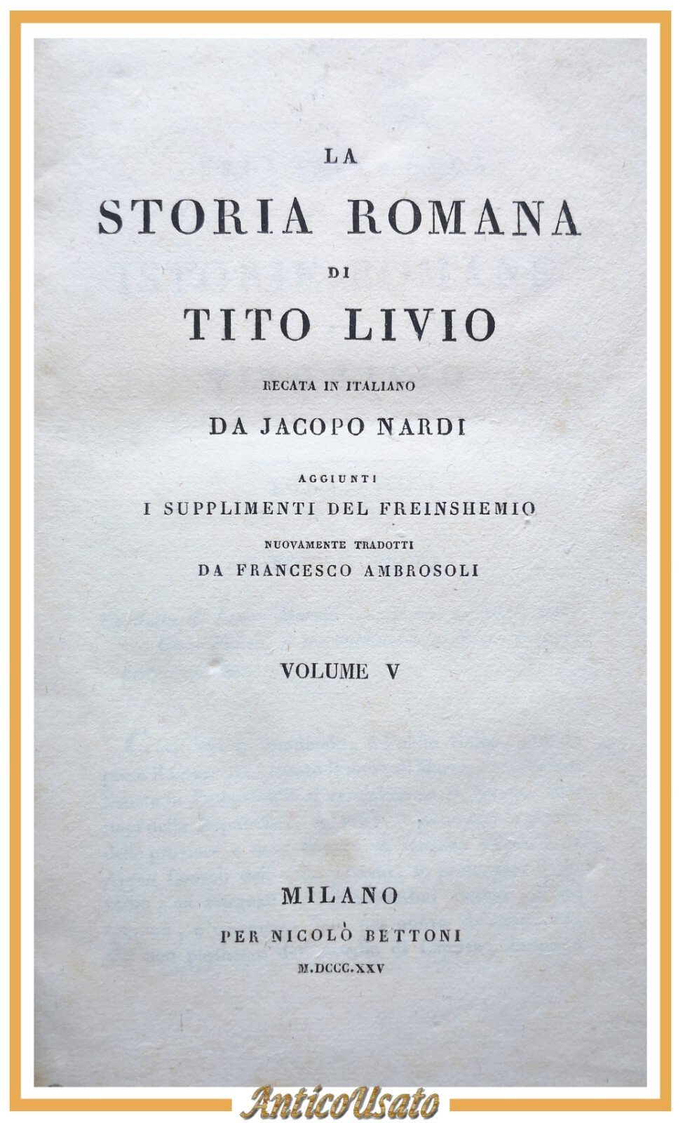 LA STORIA ROMANA DI TITO LIVIO Jacopo Nardi volume V 1825 Bettoni Libro antico