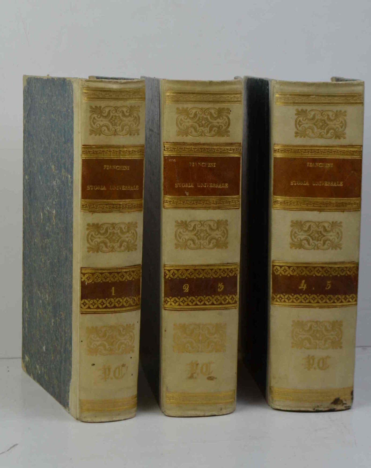 Cinque volumi legati in tre di cm. 24,5. pp. xliv, 276; 191; 315; 320; 221 + (64) d'indici ed elenco associati. Con varie tabelle ripiegate e 78 tavole incise fuori testo, tra cui il ritratto ed una carta geografica. Solida ed elegante legatura coeva in mezza pergamena con piccole punte, dorsi lisci con ricchi fregi in oro e titoli su doppi tasselli. Esemplare genuino, marginoso ed in ottimo stato di conservazione. Cfr. Cicognara: "...opera utilissima per la cronologia, la storia e l'antiquaria...". Terza ediz. fatta sull'orig. di Roma, 1697. Gamba (1798): "Migliore d'ogni altra è la edizione moderna di Venezia, Battaggia, 1825-28...".