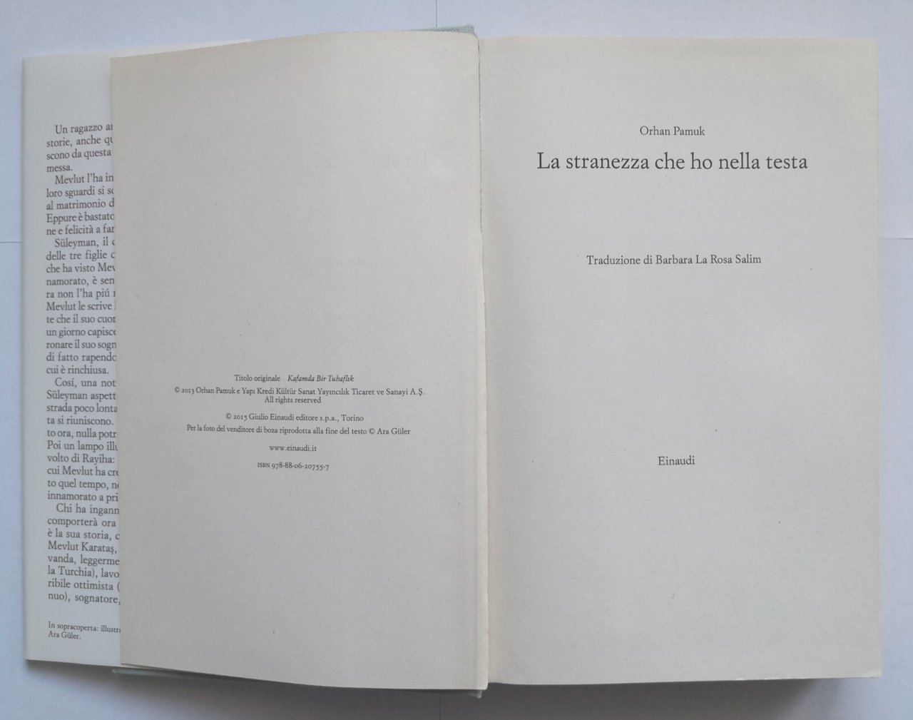 LA STRANEZZA CHE HO NELLA TESTA di Orhan Pamuk 2015 Einaudi lbro romanzo