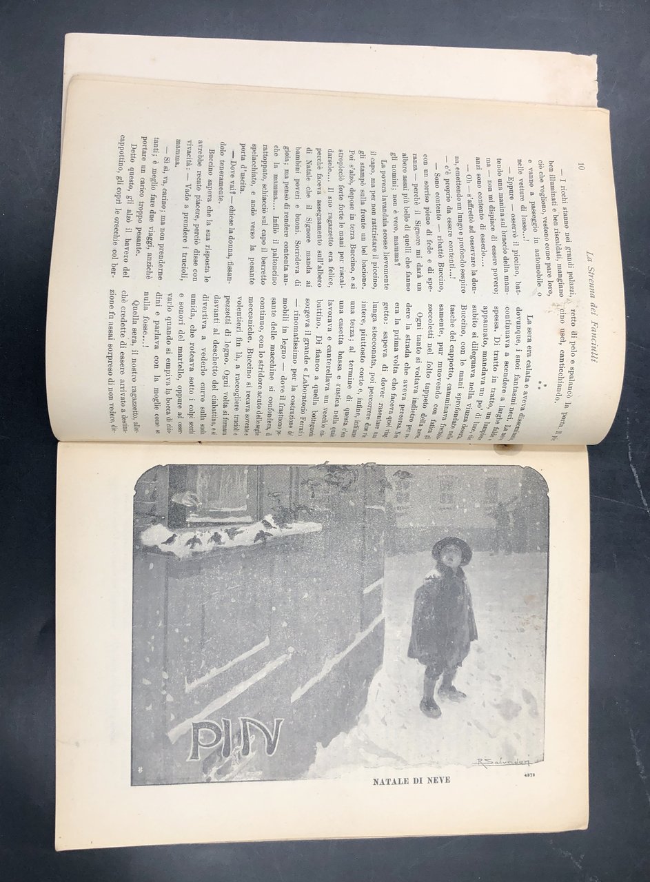 In-8° (cm. 21,3x16, pp. 31, (1) con alcuni fregi e ILLUSTRAZIONI in bianco e e nero (tra cui un bel disegno a piena pagina di R. SALVADORI, disegni di gusto liberty ecc. ) b.n. n.t. Fasc. edit. a graffe (ruggine), tracce da umido al piatto anteriori e lievi ai primi fogli. Da segnalare un lungo racconto di ben 9 fitte pagine di Enrico ROBUTTI (cui è dedicata una via di Alassio), poesie di Iva BUFFA e di Joyce SALVADORI, un raccontino di Evira COLUCCI CHILOSI datato Pachino , 10 novembre 1923 ecc. Modesto es., ma raro cimelio valdese.