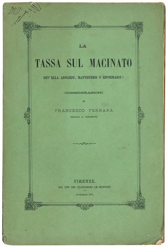 La tassa sul macinato dev'ella abolirsi, mantenersi o riformarsi? Considerazioni di Francesco Ferrara, deputato al Parlamento.