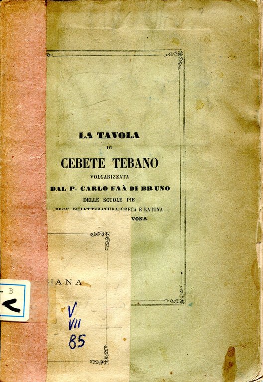 La Tavola di Cebete tebano volgarizzata dal P. Carlo Fàa di Bruno della scuole pie