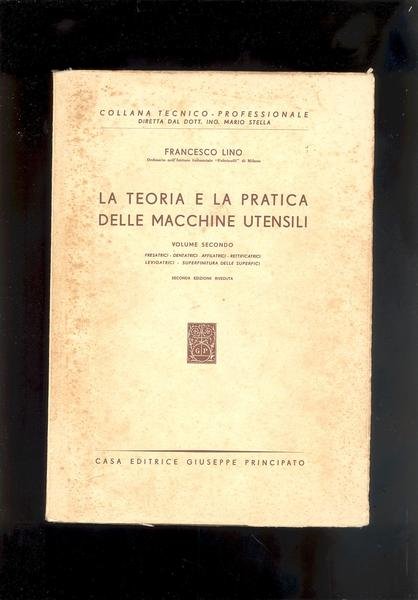 IN 8°, pp.236, COPERTINA EDITORIALE IN BROSSURA CON TITOLO. 225 fig. in b/n. NEL TESTO<BR>e f.t. E' IL VOLUME II DELL'OPERA IL CUI ARGOMENTO SONO: FRESATRICI - DENTATRICI -<BR>AFFILATRICI - RETTIFICATRICI - LEVIGATRICI - SUPERFINITURA DELLE SUPERFICI. NUOVA<BR>EDIZIONE RIVEDUTA ED AMPLIATA. OPERA FACENTE PARTE DELLA COLLANA TECNICI - PROFESSIONALE DIRETTA DAL DOTT. ING. MARIO STELLA. TRACCE DI POLVERE ALLE<BR>COPERTINE, ALTRIMENTI OTTIMA CONSERVAZIONE.ID 3075