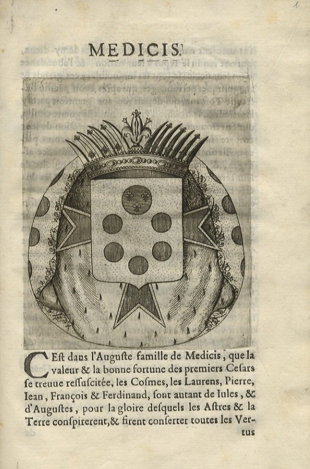 [Parigi, s.n.t.], 1656, in-4, ben legato in tutta pergamena moderna con filettature a secco, titolo calligrafato sul dorso. cc. [96]. Frontespizio allegorico e 14 grandi stemmi incisi in rame. Brunet, III-1045, cita l'opera, ma in altra edizione, con titolo e data diversi.