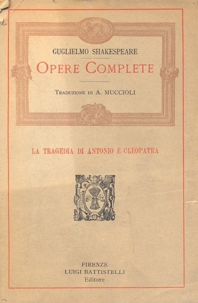 La tragedia di Antonio e Cleopatra. Traduzione di Alessandro Muccioli.