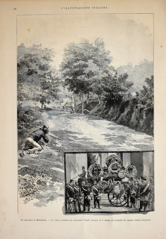 La tragedia di Benevento, Carro funebre del Maggiore Varino. Stampa 1889
