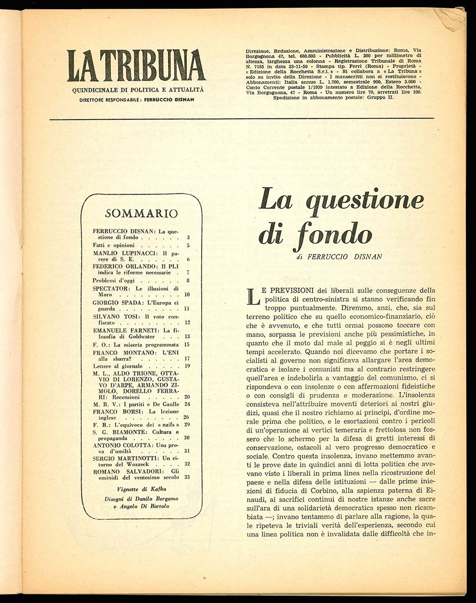 Contiene, tra gli altri, articoli di Ferruccio Disnan, Manlio Lupinaci, Federico Orlando, Giorgio Spada, Silvano Tosi, Emanuele Farneti, Franco Montano, Franco Borsi e Antonio Colotta.