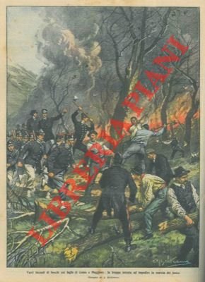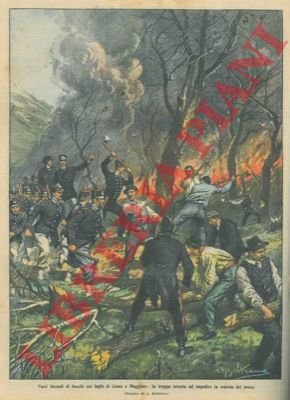 La truppa intenta ad impedire la marcia del fuoco di un incendio scoppiato sui laghi di Como e Maggiore)