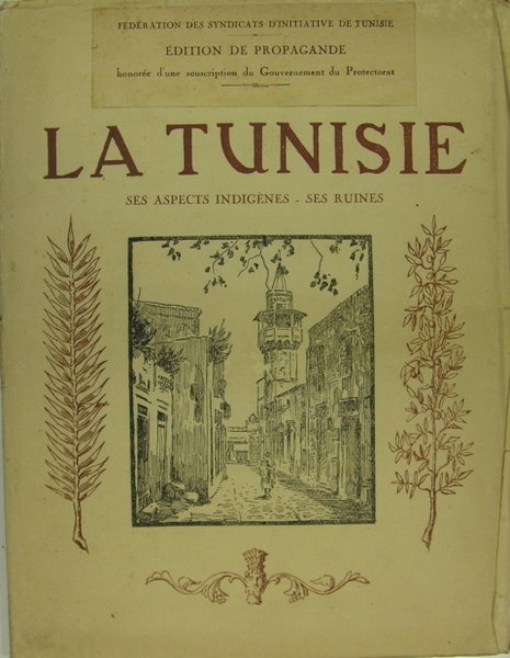 Fédération des syndicats d'initiative de Tusinise, édition de propagande du gouvernement du Protectorat, 1930. Plaquette grand in/4 brochée, couverture illustrée, bois de Hyg et Sirius, 48 p. D'après le texte de Armand Ravelet et les dessins originaux de HYG et de SIRIUS.Couverture abîmée en bordures.
