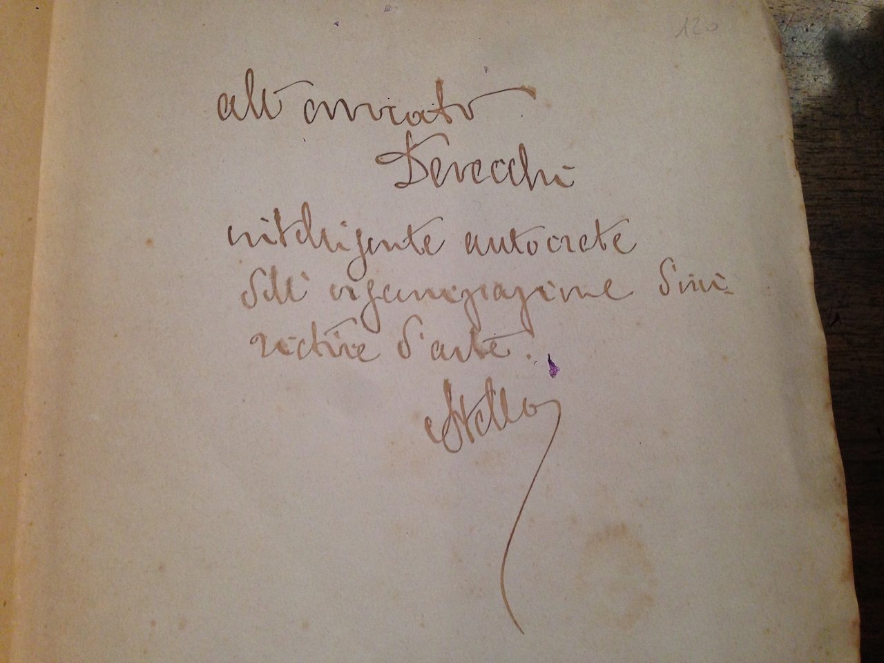 In-4°, pp. n.n. circa 200, brossura editoriale . Bella dedica autografa di stella al quadrumviro De Vecchi. Bel ex libris xilografico. Leggera mancanza al dorso.all'altezza della cuffia.