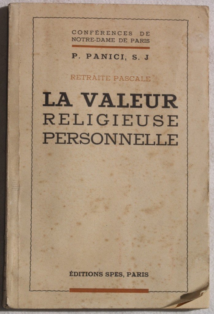 In 16. Dim. 17,5x11,5 cm. Pp. 95. Edizione del 1941 di questa opera sul valore religioso personale di Panici. L'autore parla della fede, purezza, sacrificio, l'amore, la fedeltà. In buone condizioni. Brossura editoriale in buone condizioni generali con lievi usure ai margini e dorso. Legatura in discrete condizioni con alcune pagine staccate. All'interno le pagine si presentano in ottime condizioni con rare fioriture. Edition of 1941 of this work about the personal religious value by Panici. The author talks about faith, purity, sacrifice, love, faithful. In good conditions. Editorial cover in good general conditions slightly worn in the edges and spine. Binding in fair conditions with some pages detached. Inside pages are in very good conditions with occasional foxings.