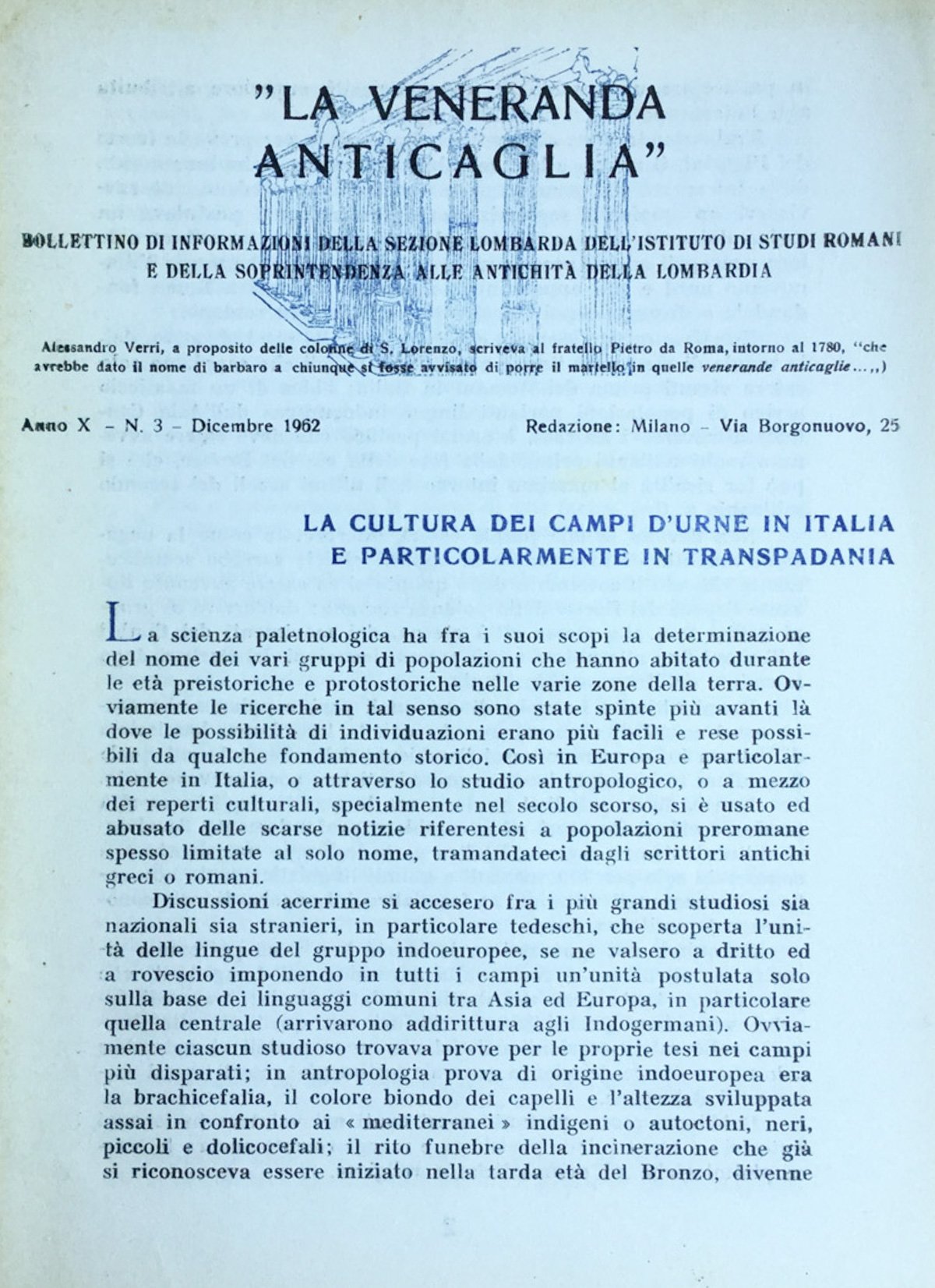 Bollettino di informazioni della sezione lombarda dell'Istituto di studi romani e della Soprintendenza alle antichità della Lombardia. Anno X n. 3 dicembre 1962. 937 - Ba In Ottavi (15-23cm ) Buono (Good) Buono