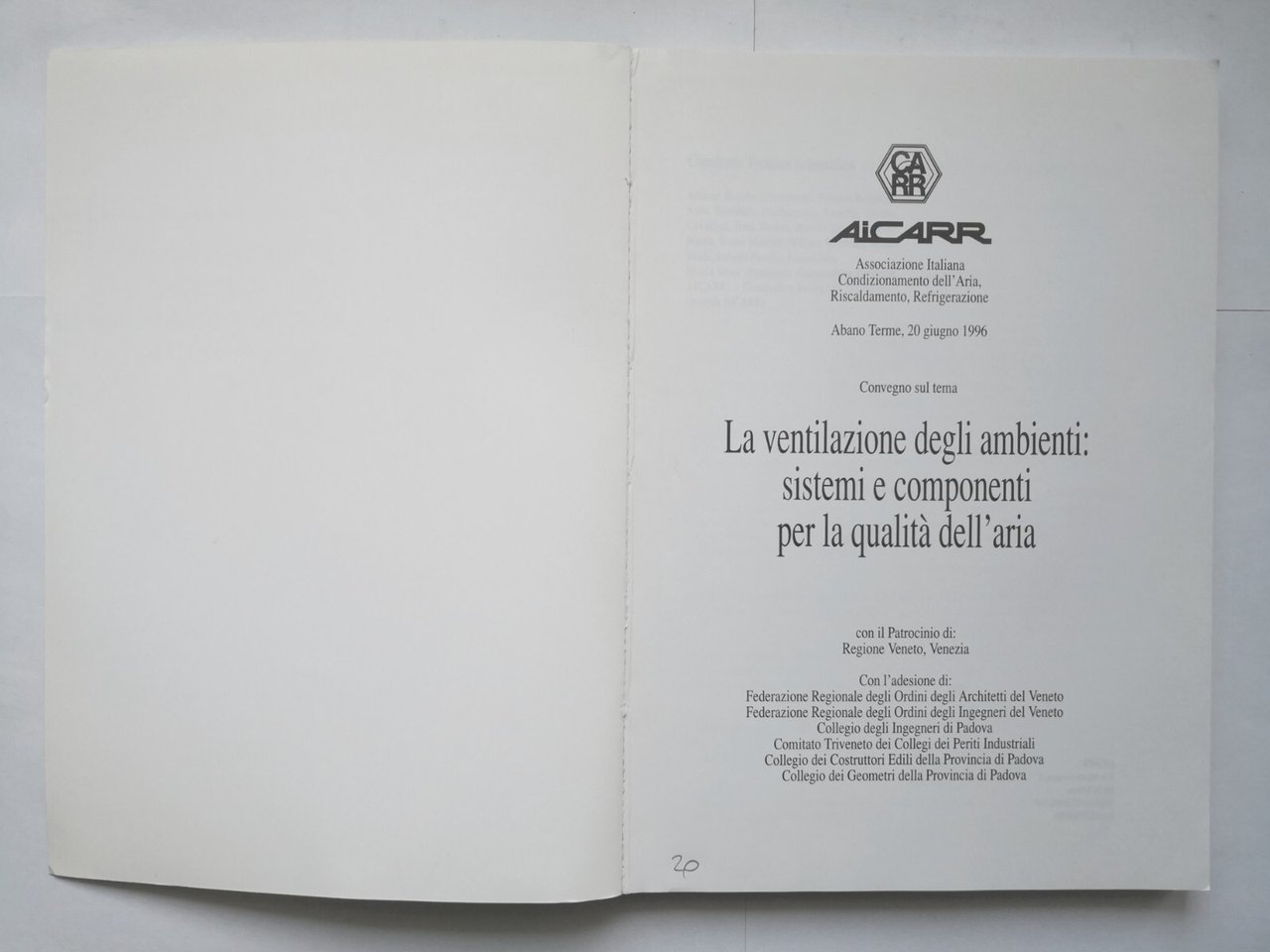 LA VENTILAZIONE DEGLI AMBIENTI: SISTEMI E COMPONENTI PER LA QUALITÀ DELL'ARIA. Convegno. Abano Terme, 20 giugno 1996.