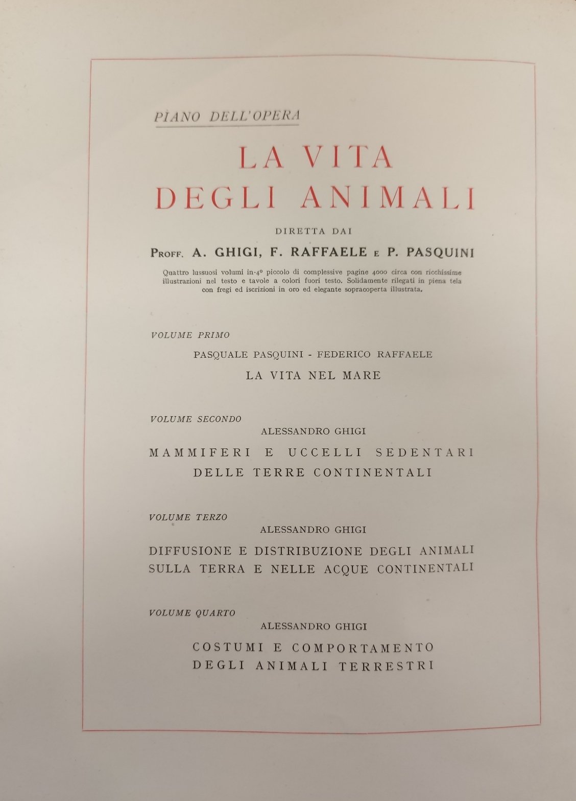 Vol. IV: Costumi e comportamento degli animali terrestri. Vol. I: 8 tavv. a colori f. t. e 1090 ill. in bianco e nero.