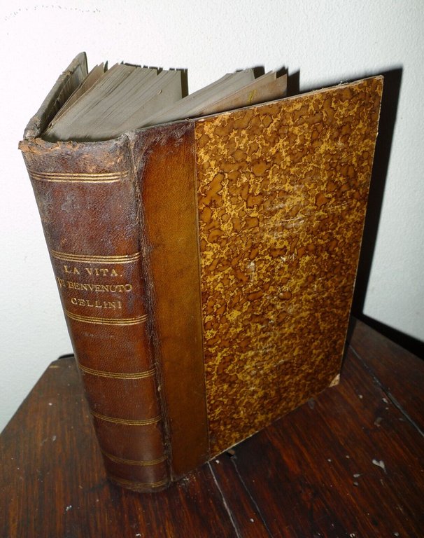 LA VITA DI BENVENUTO CELLINISCRITTA DA LUI MEDESIMO.Restituita esattamente alla lezione originale,con osservazioni filologiche ne brevi notedichiarative ad uso dei non toscani.NUOVA EDIZIONE PER CURA DI B.BIANCHI;CON VARI DOCUMENTI IN FINE,CONCERNENTI LA VITA E LE OPERE DELL'AUTORE.FIRENZE, SUCCESSORI LE MONNIER, 1866,copertina rigida, rilegatura coeva in mezza pelle,18x12 cm., pp.626,peso: g.600