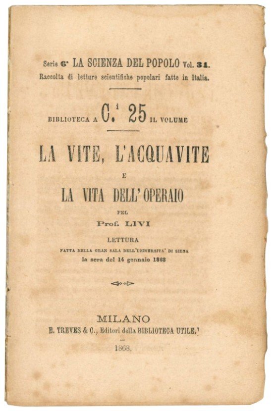 La vite, l'acquavite e la vita dell'operaio: lettura fatta nella Gran sala dell'Università di Siena la sera del 14 gennaio 1868.