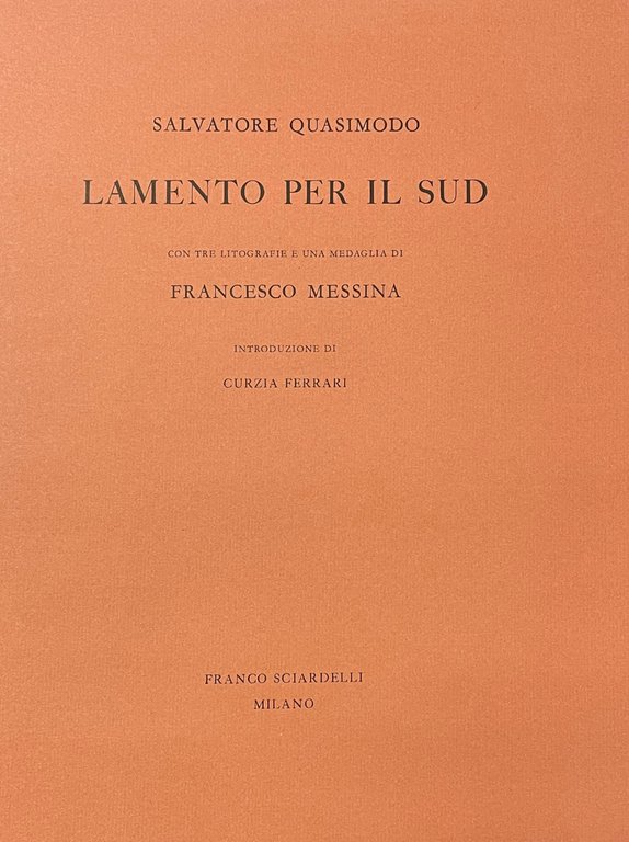 Introduzione di Curzia Ferrari Con tre litografie firmate (Tiratura 63/120) e una medaglia di Francesco Messina in folio fascicolato con cofanetto pp. 12 Buono (Good) Buon es..