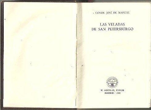 LAS VELADAS DE SAN PETERSBURGO O DIALOGOS SOBRE EL GOBIERNO TEMPORAL DE LA PROVIDENCIA.