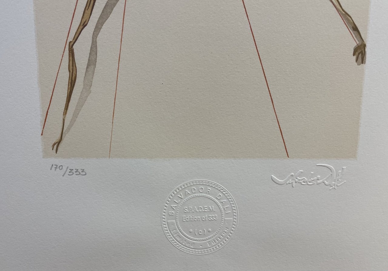 Tiratura 170/333. Timbro a secco "Salvador Dalì" in basso a destra. Timbro a secco "S.P.A.D.E.M." in basso al centro. litografia cm. 50 x 40 Buono (Good) Buon es..