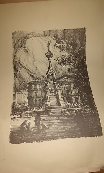 LASTERRA LASTERRA. VISTA DEL MONUMENTO A LOS FUEROS DE NAVARRA EN PAMPLONA (Lámina para enmarcar) s.e. 1980 (Tamaño 64X46 cm) 1980. Gran desplegable representando un dibujo, en blanco y negro, del Monumento a los Fueros situado en Pamplona. Ed. por Caja de Ahorros Municipal de Pamplona. X (Ref.38766) navarra arte fueros dibujo laminas
