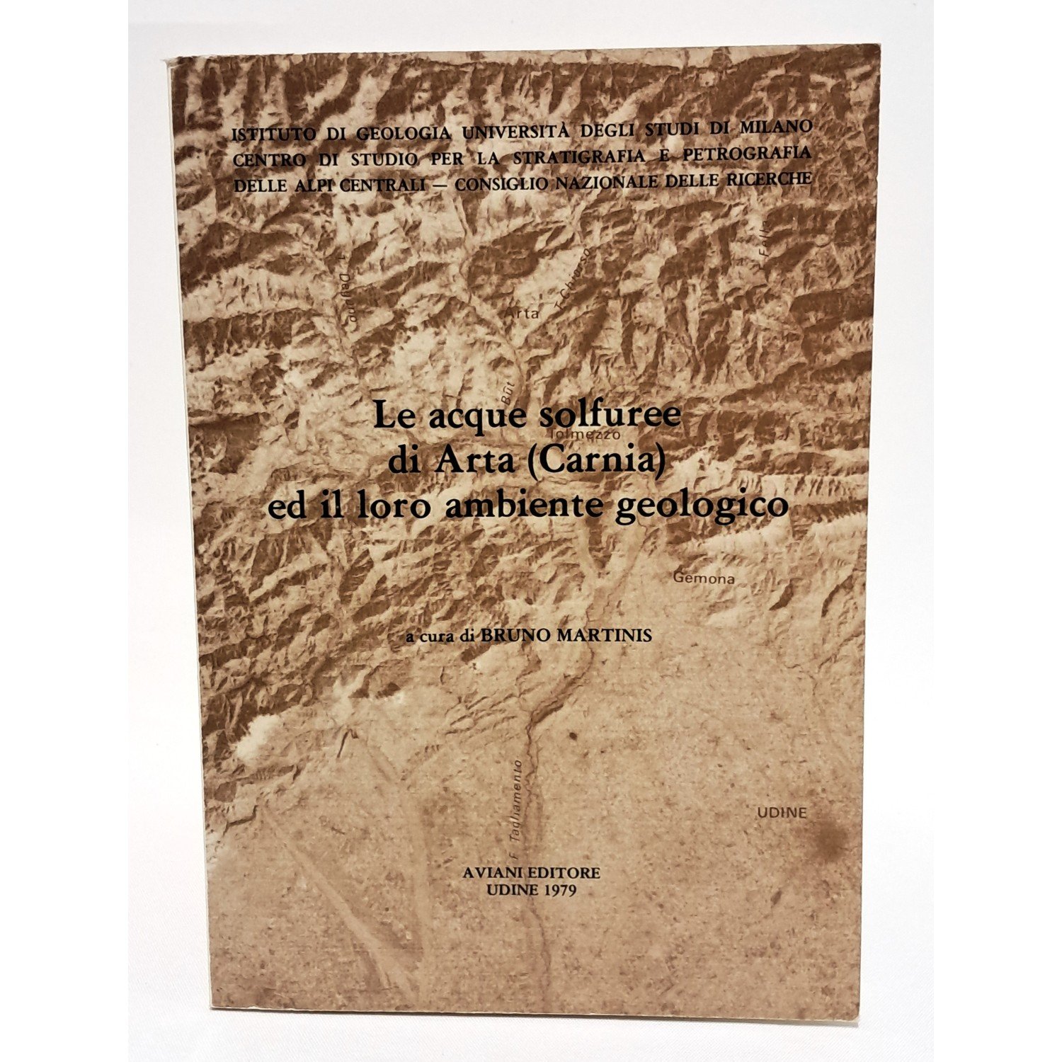 PRIMA EDIZIONE, pubblicazione curata dall'istituto di geologia università degli studi di Milano e centro di studio per la stratigrafia e petrografia delle Alpi centrali, Consiglio Nazionale Ricerche Studio sulle acque terapeutiche di Arta: Inquadramento geologico, Martinis Bruno; La successione stratigrafica: rocce lapidee, A. Cavallin; Assetto strutturale, A. Cavallin; Evoluzione geologica, A. Cavallin e B. Martinis; Il lago quaternario di Sutrio, B. Martinis; Processi geomorfici in atto, B. Martinis; Il clima di Arta, S. Belloni; Prospezione geofisica, M. Mancuso e G. Sfondrini; L'acqua pudia e le terme di Arta: notizie storiche; B. Martinis; Idrogeologia di A. Cavallin. Con allegata carta geologica al 25000 a colori. Brossura. Pp. 185. Ottime condizioni.