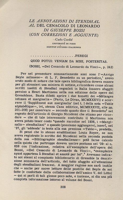 Le annotazioni di Stendhal al Del Cenacolo di Leonardo di Giuseppe Bossi (con correzioni e aggiunte).