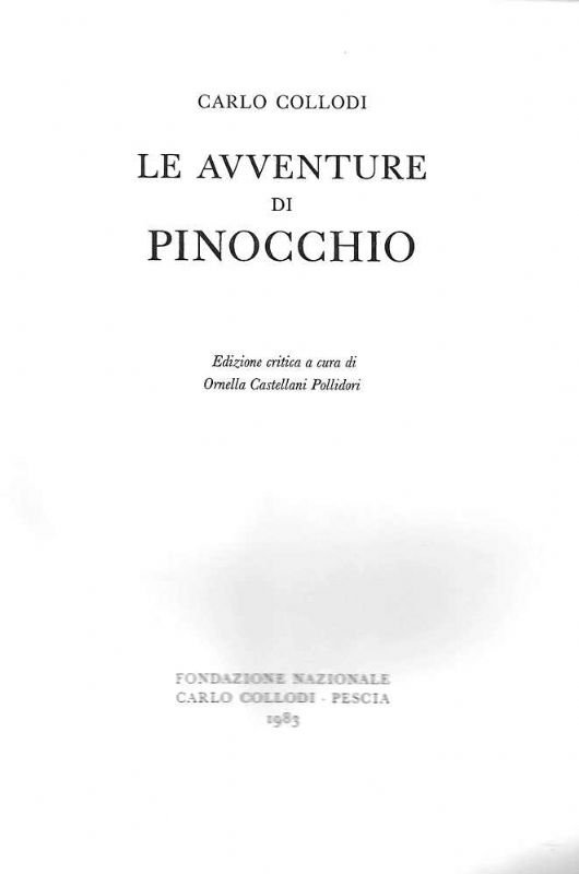 Le avventure di Pinocchio. Edizione critica a cura di Ornella Castellani Pollidori.