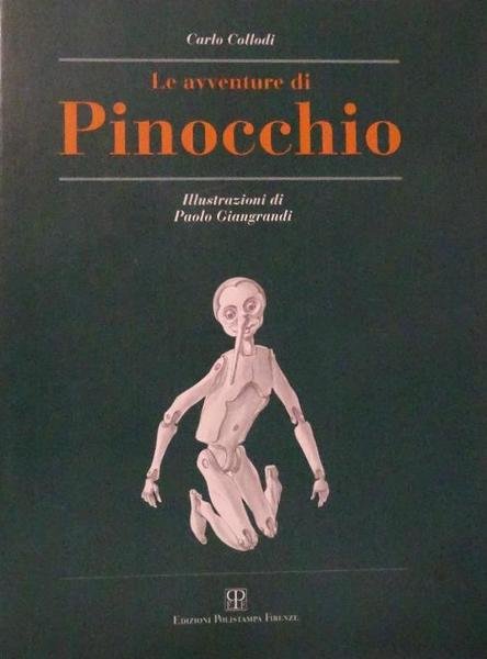 “Il legno, in cui è tagliato Pinocchio, è l’umanità, ed egli si rizza in piedi ed entra nella vita come l’uomo che intraprende il suo noviziato.” (Benedetto Croce). Queta critica, del 1937, innescherà un meccanismo di rivalutazione e rilettura del capolavoro collodiano in chiave non soltanto pedagogica, ma più ampiamente e altamente letteraria. Del successo che poi l’opera ha avuto ed ha non importa dire. Dalla prefazione di Francesco Gurrieri: “… Ora, dal territorio inconsueto e poco frequentato dell’umiltà, sorge questo Pinocchio illustrato dal Giangrandi: un artista che non ha mai inseguito il successo e non ha mai perseguito la pubblicità… che propone oggi, col sapore buono del pane fatto in casa in un forno a legna, la sua interpretazione iconografica di Pinocchio; della quale potremmo dire e sottolineare della sua personalissima cifra stilistica, della sua cultura artistica e d’altro ancora…”. Il volume, dalla veste tipografica particolarmente accurata, è rilegato con copertina rigida. (T - CA).
