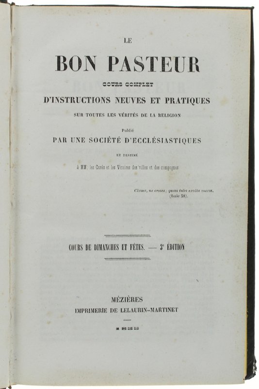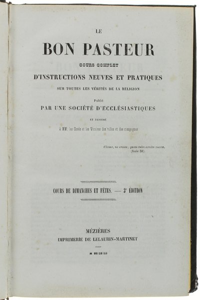 LE BON PASTEUR. Cours Complet d'Instructions neuves et pratiques sur toutes les vérités de la Religion publié par une Société d'Ecclésiastique et destiné à MM. les Curés et les Vicaires des villes et des campagnes. COURS DE DIMANCHES ET FETES. 3e édition.