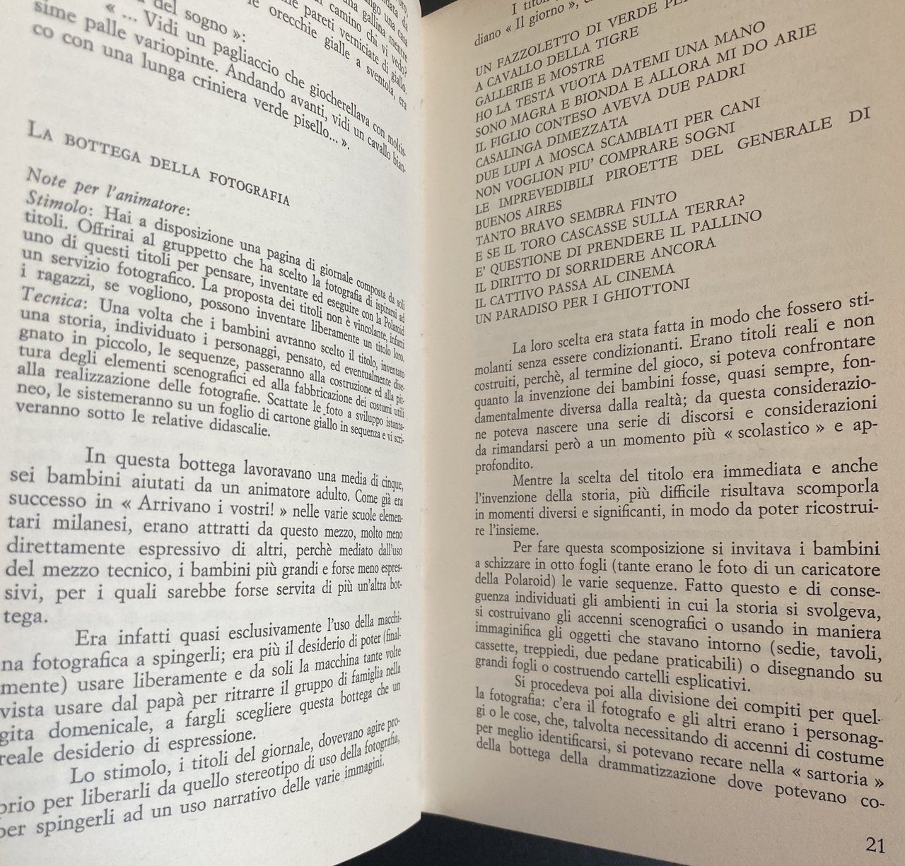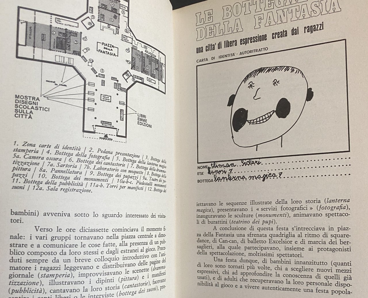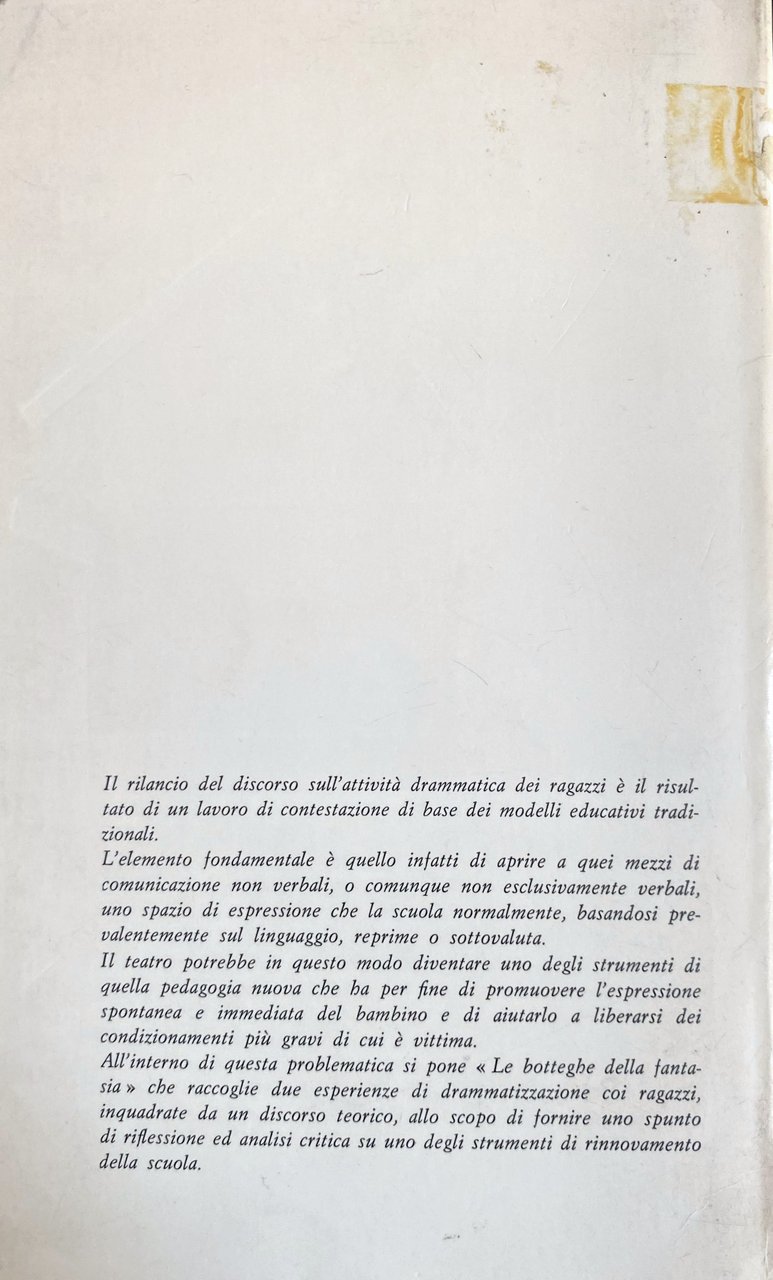 All'interno di questa problematica si pone « Le botteghe della fantasia che raccoglie due esperienze di drammatizzazione coi ragazzi, inquadrate da un discorso teorico, allo scopo di fornire uno spunto di riflessione ed analisi critica su uno degli strumenti di rinnovamento della scuola.
