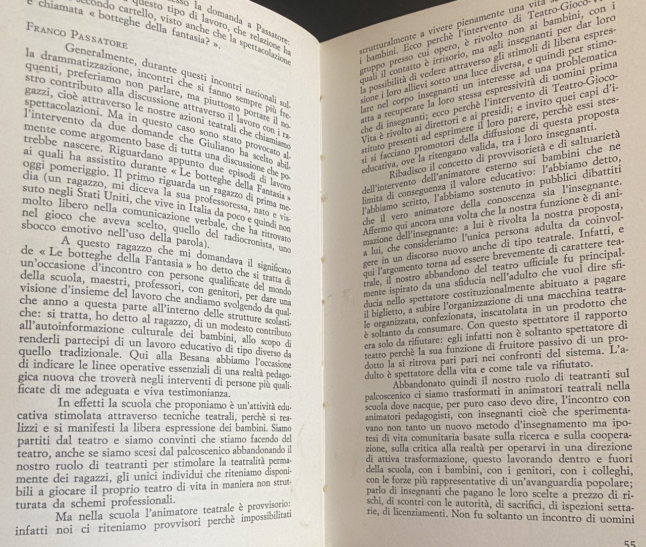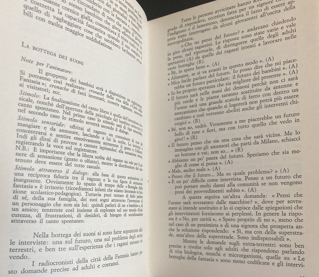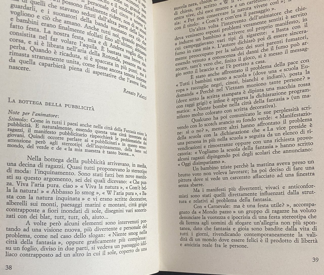 All'interno di questa problematica si pone « Le botteghe della fantasia che raccoglie due esperienze di drammatizzazione coi ragazzi, inquadrate da un discorso teorico, allo scopo di fornire uno spunto di riflessione ed analisi critica su uno degli strumenti di rinnovamento della scuola.