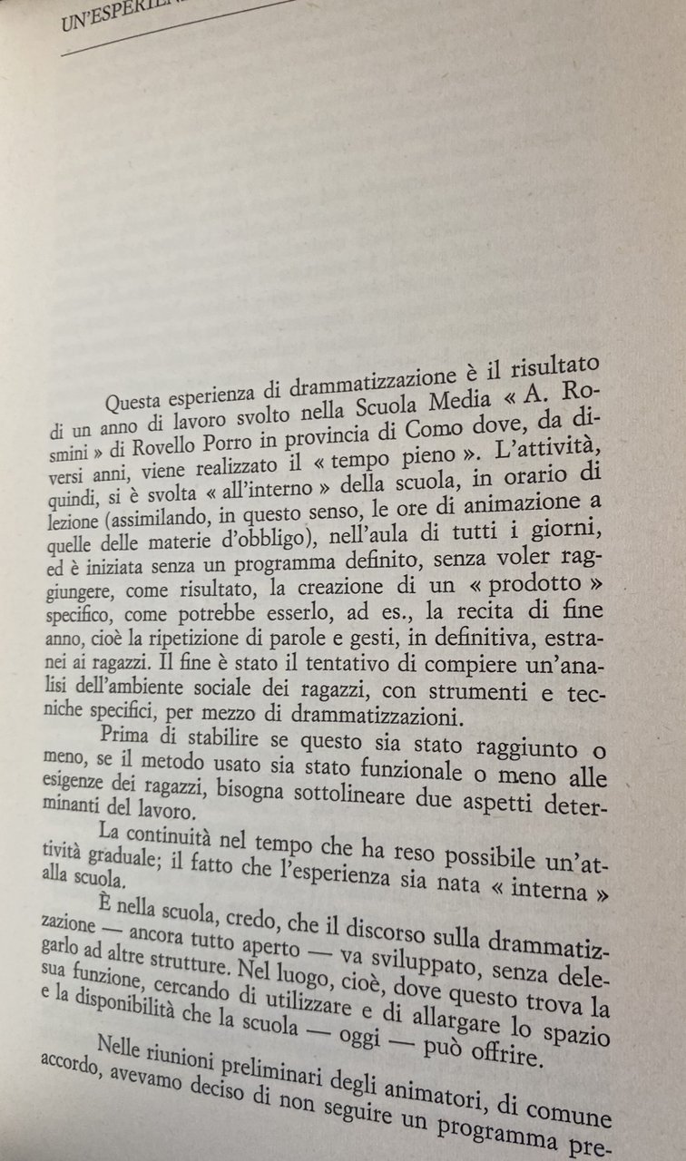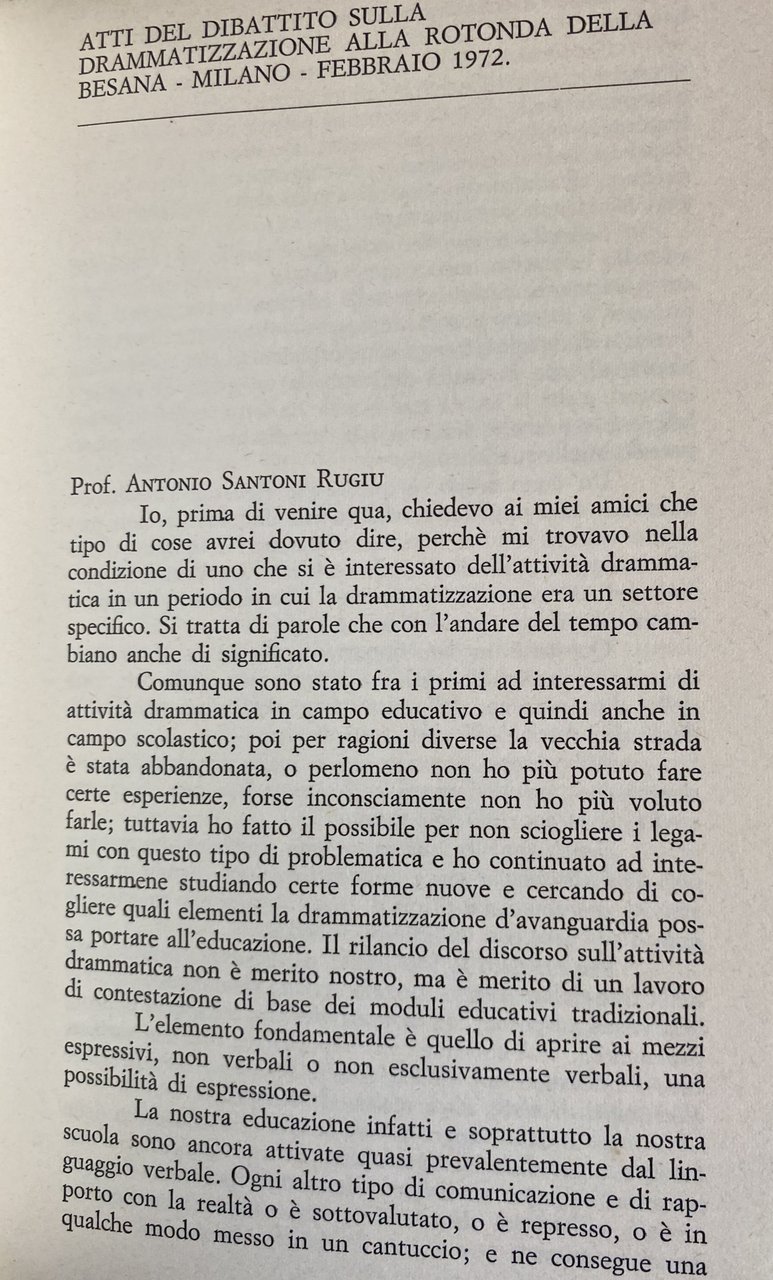 Il rilancio del discorso sull'attività drammatica dei ragazzi è il risultato di un lavoro di contestazione di base dei modelli educativi tradizionali.