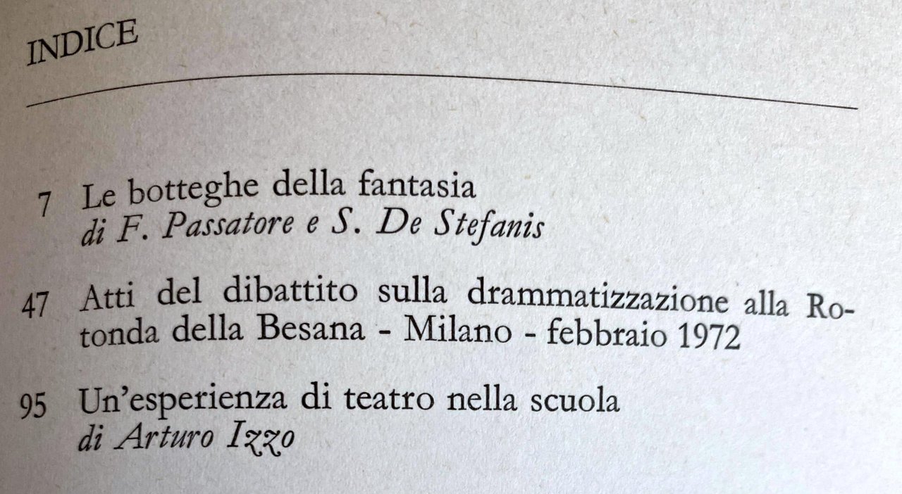 LE BOTTEGHE DELLA FANTASIA: INDAGINE SULLA TEATRALITÀ DEI RAGAZZI. Atti di un dibattito tenutosi a Milano nel 1972 e un'esperienza di teatro a scuola. | Libri antichi e moderni | Franco Passatore, Silvio De Stefanis, Arturo Izzo