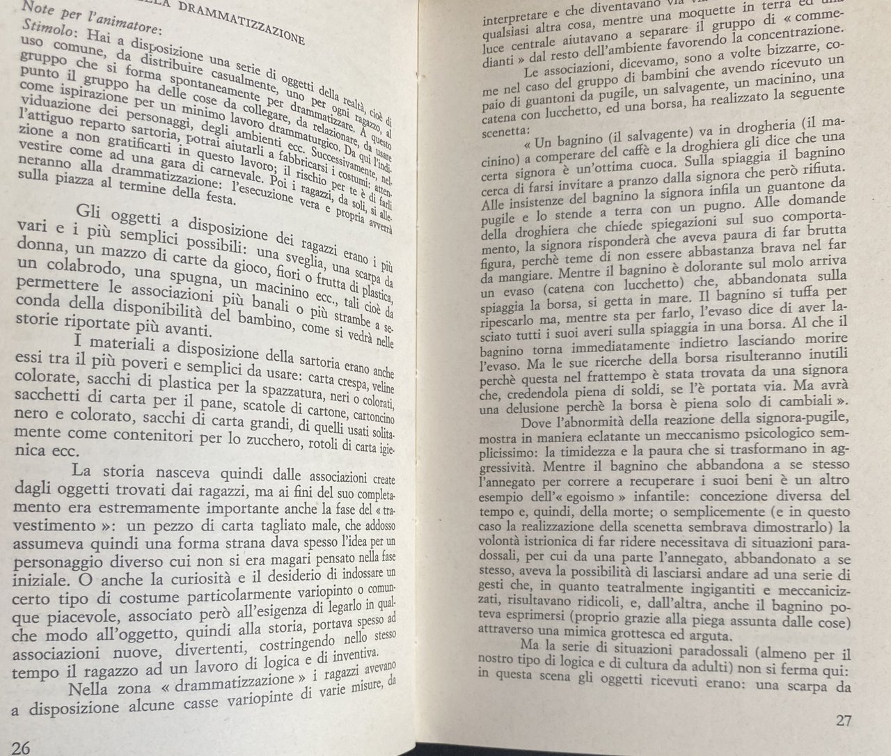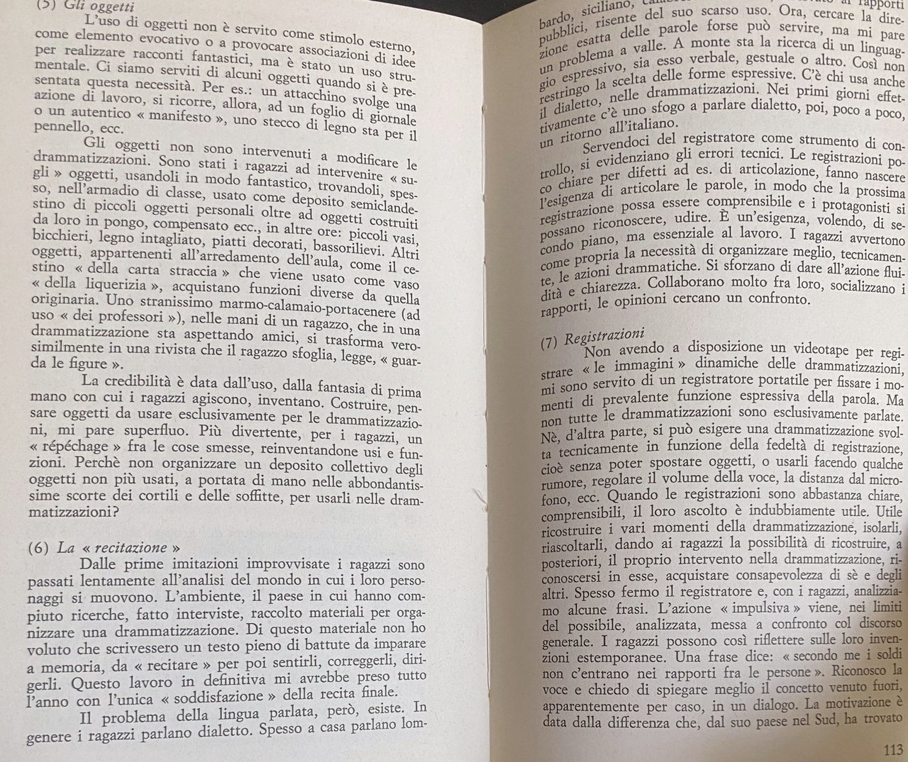 - Teatro, Educazione infantile, Educazione, Scuola sperimentale, Drammaturgia, Recitazione, Bambini, Ragazzi, Didattica, Pedagogia, Modelli didattici, Linguaggio non verbale, Fantasia, Critica, Rinnovamento pedagogico, Comunicazione non verbale, Espressività, Scuola, Ambiente sociale, Socializzazione, Arti dello spettacolo, Arti performative, Performance, Esperienze, Teorie pedagogiche, Drammatizzazione, Attività extra-scolastiche, Gruppi, Teatro-Gioco-Vita, Anni Sessanta, Anni Settanta, Gioco teatrale, Contestazione, Spettacolazione, Insegnanti, Autorità, Docenti, Antiautoritarismo, Scuole, Collezionismo, Libri illustrati, Libri rari, Libri fuori catalogo, Attori, Animazione, Compagnie teatrali, Relazioni, Dinamiche sociali, Interazione, Partecipazione, Catarsi, Giochi creativi, Interpretazione, Personaggi, Ruoli, Creatività, Formazione, Teatralità, Apprendimento, Ideologie, Repressione, Sistema educativo, Maschere, Burattini, Psicopedagogia, Quarta Parete, Scrittura collettiva, Spettacolo, Animatori, Tempo pieno