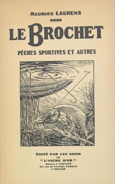 Edité par les soins de “ L’Ancre d’Or “, 1948. In/8 broché, couverture illustrée, 156 pages. Seconde édition illustrée de nombreuses figures et photographies en noir dans le texte. Aucun poisson d’eau douce n’a une histoire aussi imagée, aussi fantastique que le brochet. Fort de sa longue expérience Maurice Laurens nous apprend comment le pêcher à l’aide des différentes techniques de lancer, (le devon, la cuiller.) ; la pêche au cadre, à la traîne, aux trimmers, etc.